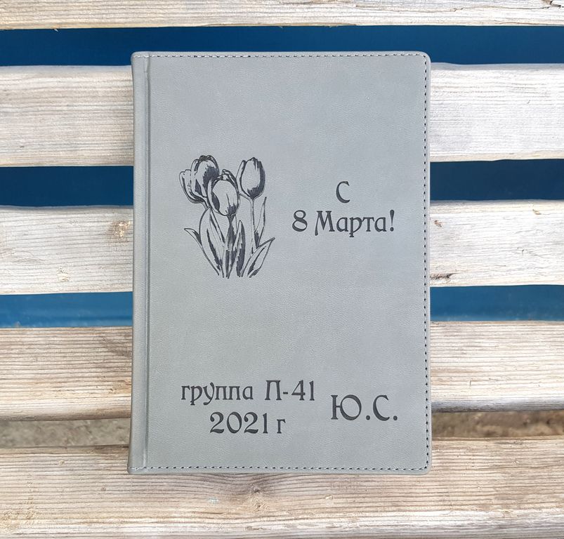 Лазерная гравировка на ежедневике с 8 марта.