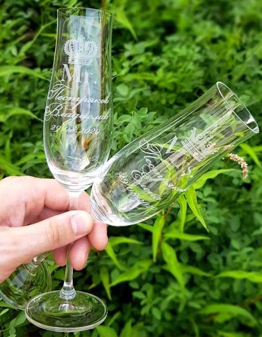 Нанесение гравировки на фужеры под шампанское для свадебного мероприятия