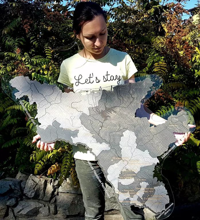 Карта амурской области из дерева, на подложке из акрила. Размер: 1,0 х 0,75 м