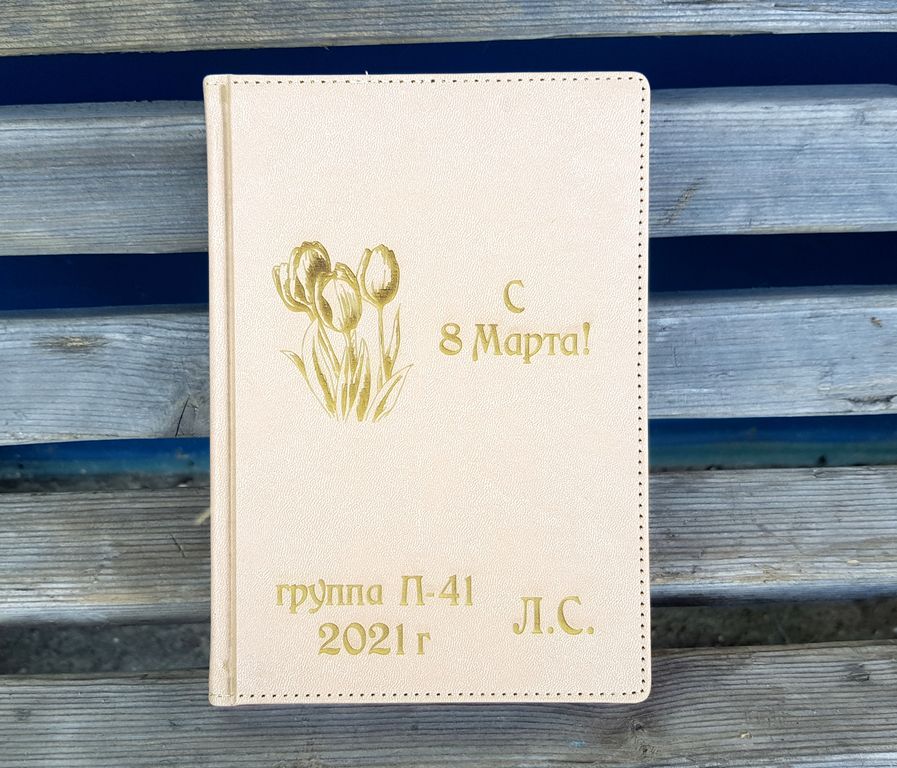 Бежевый ежедневник с индивидуальной лазерной гравировкой с 8 марта