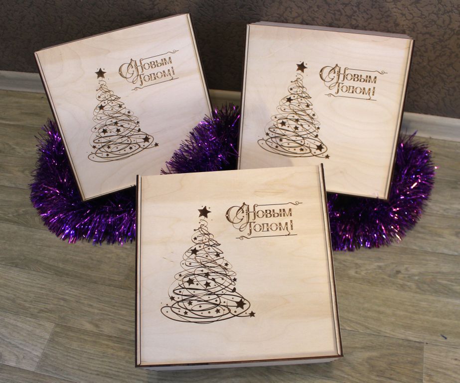 Деревянная упаковка для новогодних подарков
