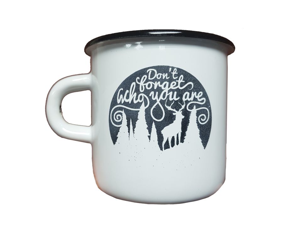 Эмалированная кружка с лазерной гравировкой "Don't forget who you are"
